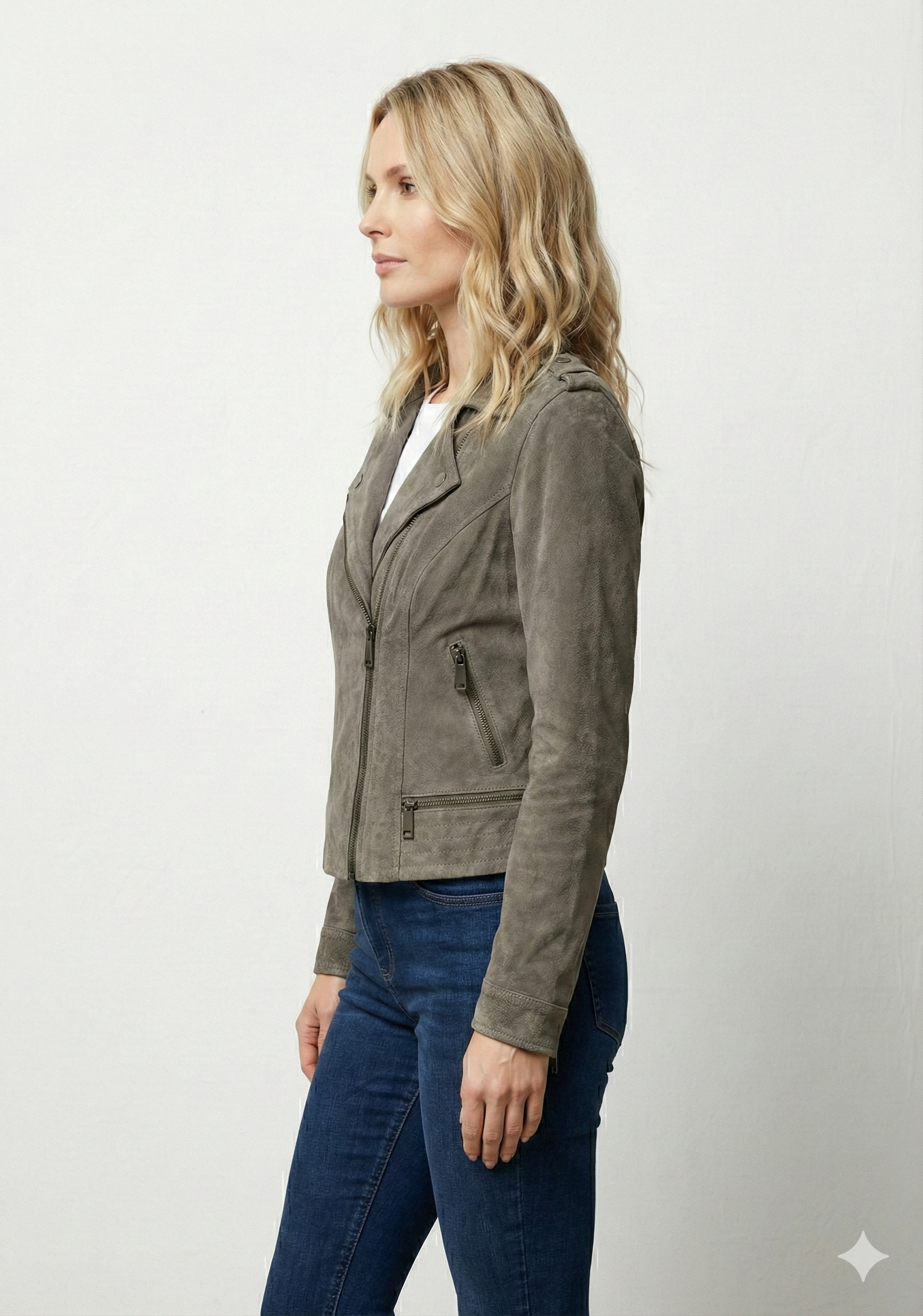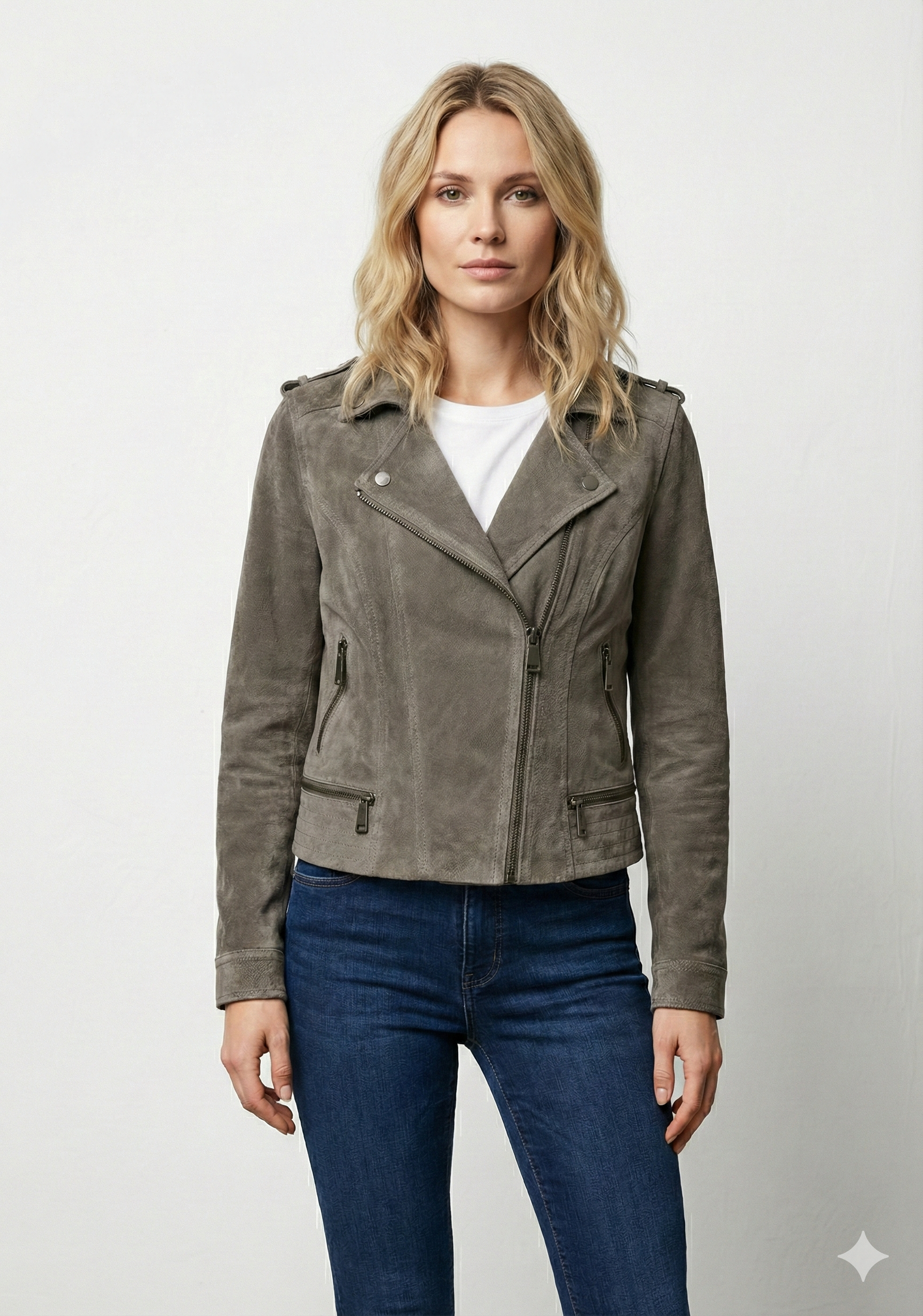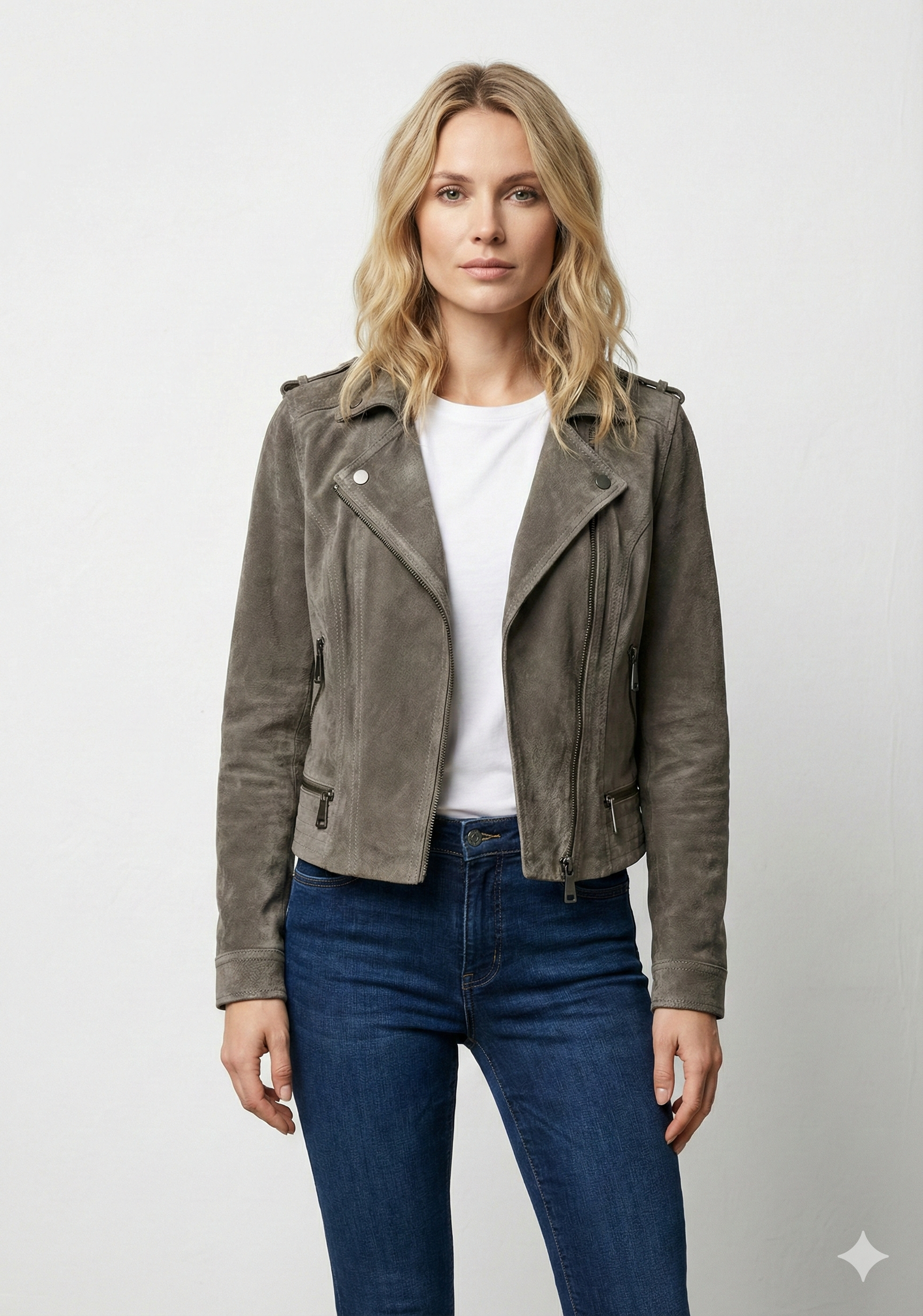 Channel your inner rebel with a modern twist in our Women’s Taupe Suede Biker Jacket. Inspired by classic motorcycle heritage, this stunning piece of Asymmetrical Moto Zip Outerwear offers a softer, more sophisticated approach to the traditional hard-edged leather look. Featuring a striking Lapel Collar adorned with classic metallic hardware, this jacket perfectly captures the balance between edgy biker aesthetics and contemporary feminine elegance, making it an absolute must-have for any trendsetter’s wardrobe.
